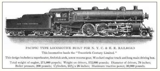 Following the use of 4-6-0 locomotives, the New York Central & Hudson River Railroad used 4-6-2 Pacific locomotives starting in 1908.